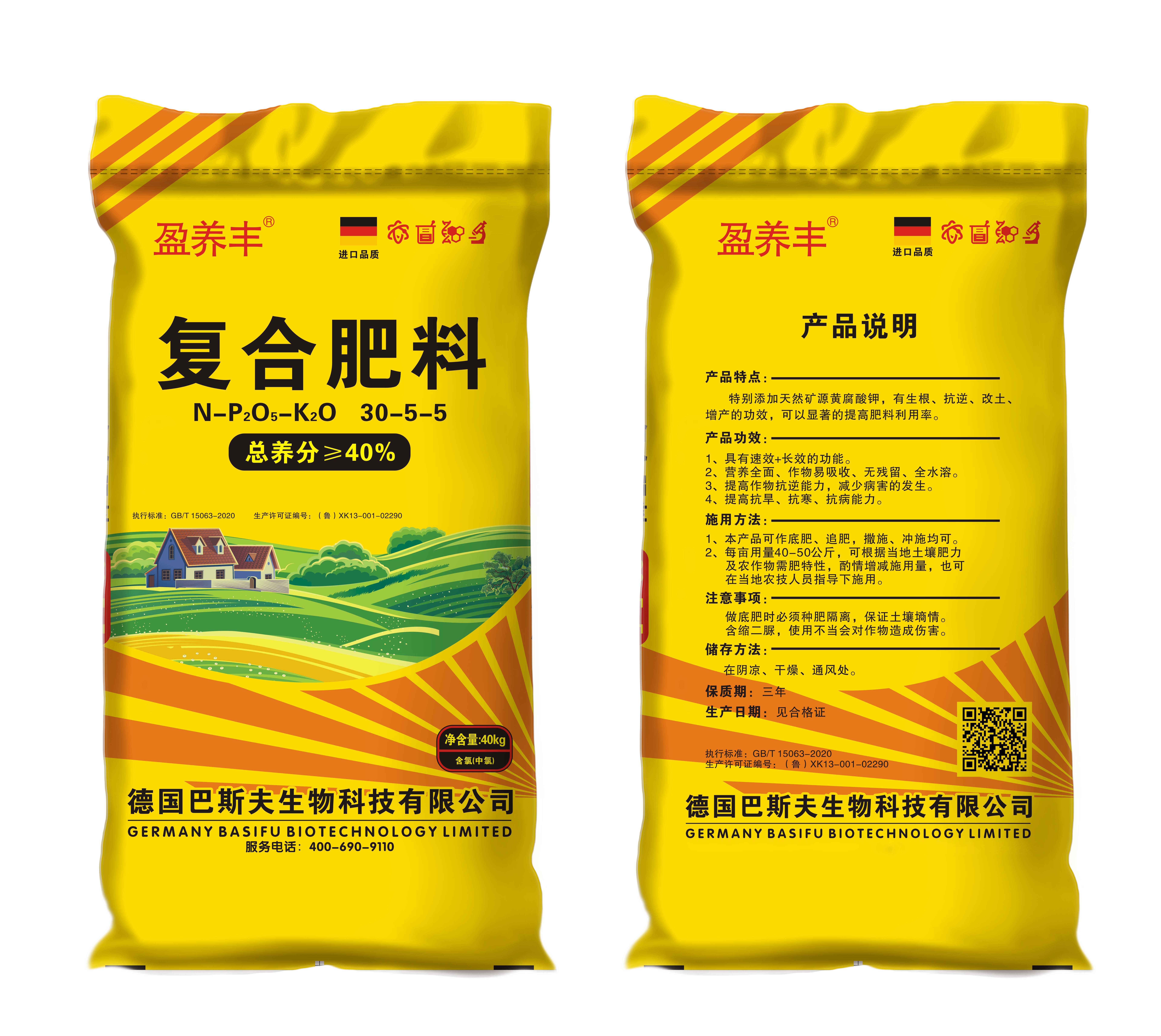 本产品具有养分全面、配比合理、质量优良等特点,施用后能满足作物的营养需求,改善作物的营养状况,增强植物的抗逆性,生根养地,预防土壤板结,提高肥料利用率,提高产品质量,增产增收。肥料浓度高,肥效好,肥效长,有利于改良活化土壤,本品采用全水溶磷肥、优等钾肥做原料,不仅适合水稻、小麦、玉米、大豆等大田作物使用,也适合棉花、花生、油菜及部分喜氯的蔬菜、瓜果、果树使用。